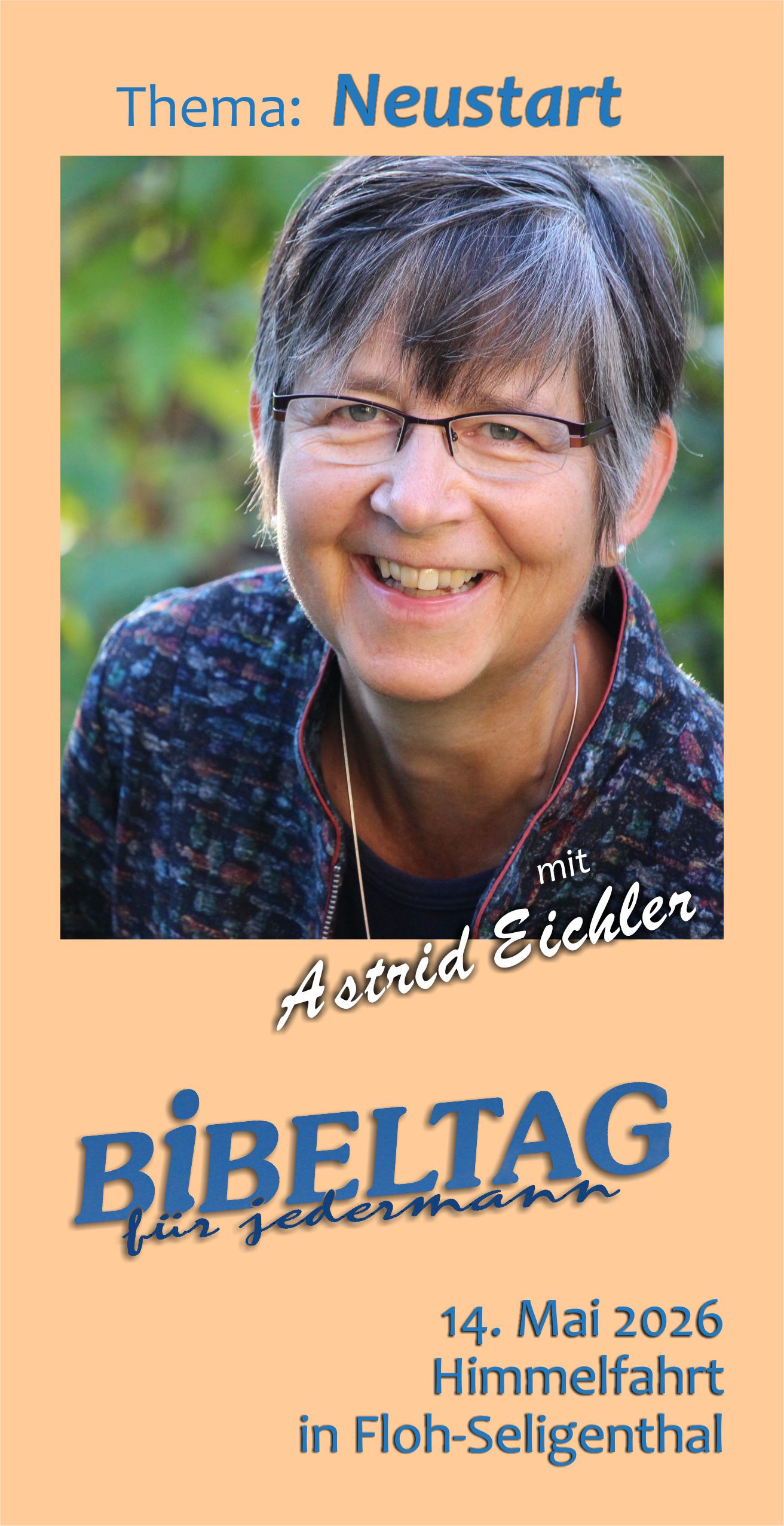 Die Landeskirchliche Gemeinschaft von Floh-Seligenthal lädt an Himmelfahrt, den 14. Mai 2026 um 09.30 Uhr recht herzlich zum Bibeltag für Jedermann ein.